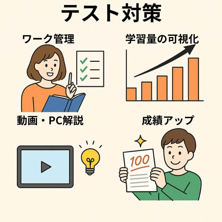 ✔ ただ終わらせるのではなく、「テストに向けた学習」としてワークを活用できる
